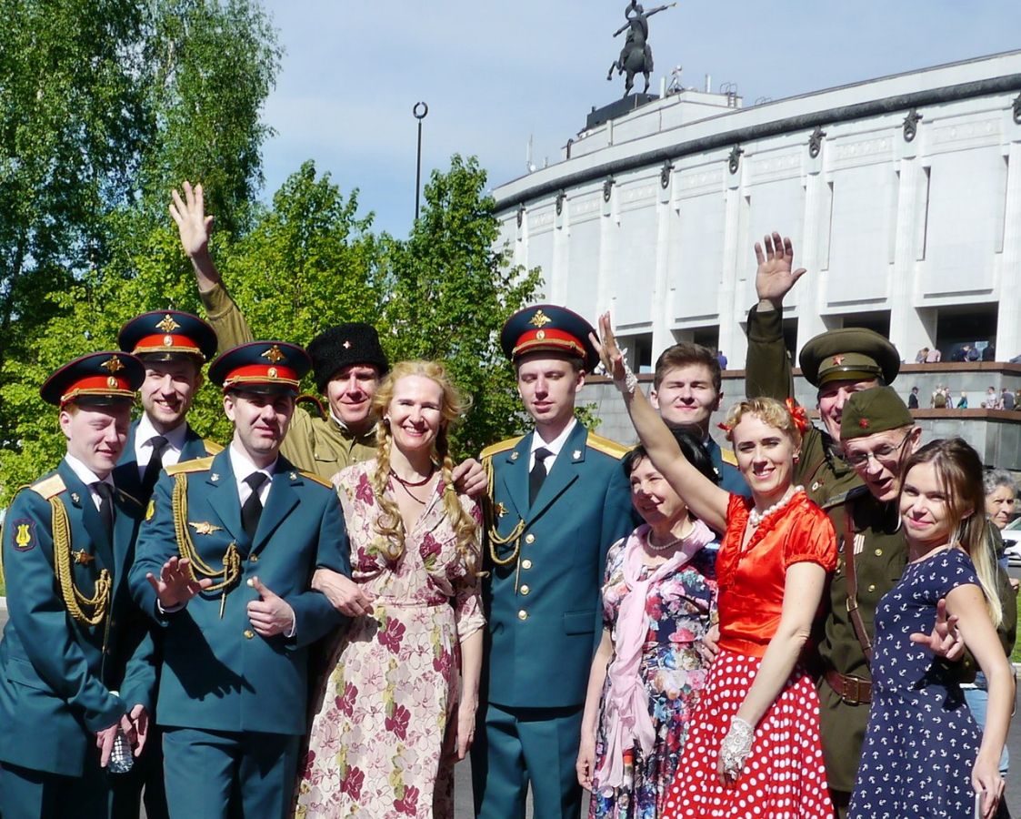 9 мая выступали в главном парке страны , в этот день, в парке Победы! Центр бальной культуры "Русский вальс" много лет назад создал и опробовал самую большую в Москве танцевальную программу "Бал Победы" военной тематики,создающую не бывало теплую атмосферу радости и гордости за Победу 1945 года. Но 9 мая заказчик спросил можно ли отойти от своей программы и танцевать в режиме он-лайн под живое исполнение на площадке.Больше никто этого из других ансамблей не может.Мы согласились.Многолетний опыт нашего профессионального ансамбля позволяет подобрать любые танцы с первых секунд мелодии ,поэтому мы вошли в положение и в течении 8 часов,с небольшими перерывами,танцевали для наших ветеранов. |