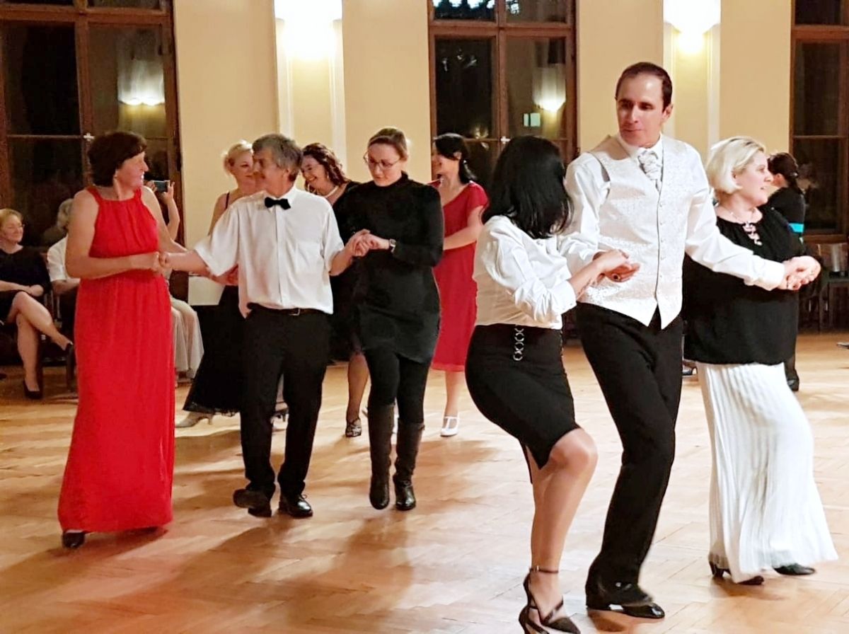 Атмосфера общей радости и веселья царила в зале до полуночи ,когда бал завершился бесконечным галопом и продолжительными аплодисментами. На фото: Ольга Фаст с партнёром по танцам. Мы участвовали во многих балах и нам есть с чем сравнивать. Бал в Йене был великолепно организован и прошёл в соответствии со всеми канонами проведения балов и в этом огромная заслуга организаторов бала: председателя MIG Михаила Бермана ,его заместителя Ольги Фаст (внёсшей большой организационный вклад), Людмилы Магазаник (отвечавшей за режиссерскую и художественно-сценарную работу) и Александра Морозова,руководителя бальной группы,готовившего танцоров в течении года. Все они настоящие энтузиасты и очень талантливые люди ,не жалевшие ни сил, ни времени на подготовку этого грандиозного бала. Большая заслуга Вячеслава Михайловича Гуральника, который стремится возродить бальные традиции и популяризировать русскую бальную программу по всему миру и щедро делится своим колоссальным опытом и знаниями. На фото: Показательный танец исполняют руководители центра бальной культуры "Русский вальс" из Москвы. Мы рады ,что и преподаватели центра бальной культуры «Русский вальс» внесли свою скромную лепту: недельными мастер-классами для танцоров Йены, показательными выступлениями , а также активным участием в самом бале. На фото: Мастер-классы для гостей бала от "Русского вальса". Хочется пожелать организаторам и участникам бала не останавливаться на достигнутом , совершенствоваться в танцах и дальнейших творческих успехов. Надеемся ,что бал в Йене станет традиционным и его ждёт великолепное будущее.